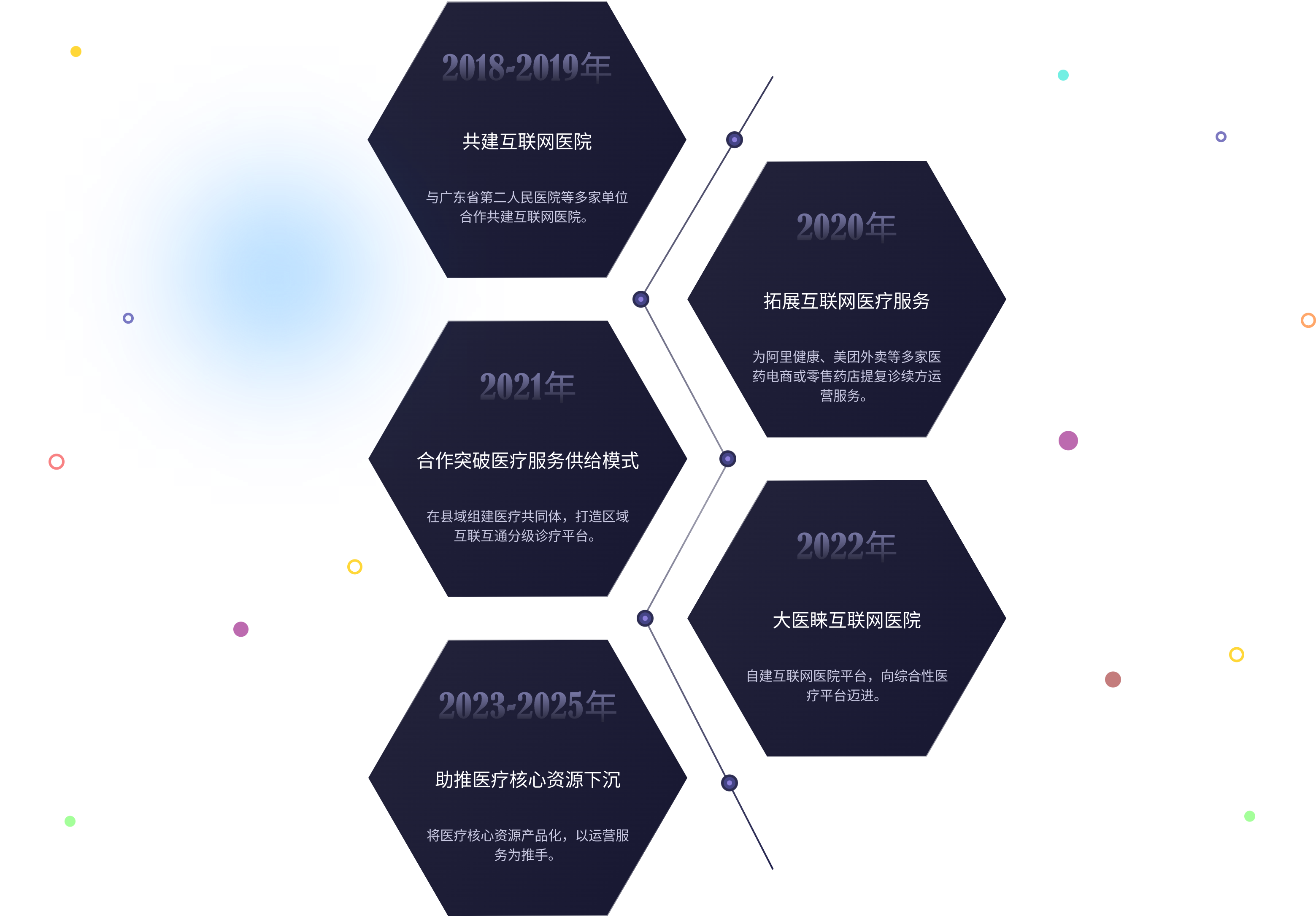 以“普及更廣泛、更便捷的醫療服務”為己任,聚焦數字醫療服務領域,致力于科技智慧創新醫療服務模式。全力打造“軟件開發+項目運營”的互聯網+醫療服務體系,為醫療健康行業提供數字化改造方案。以自建平臺為切入點,推動優質醫療資源擴容下沉,實現提升人群健康獲得感與生活質量的目標。